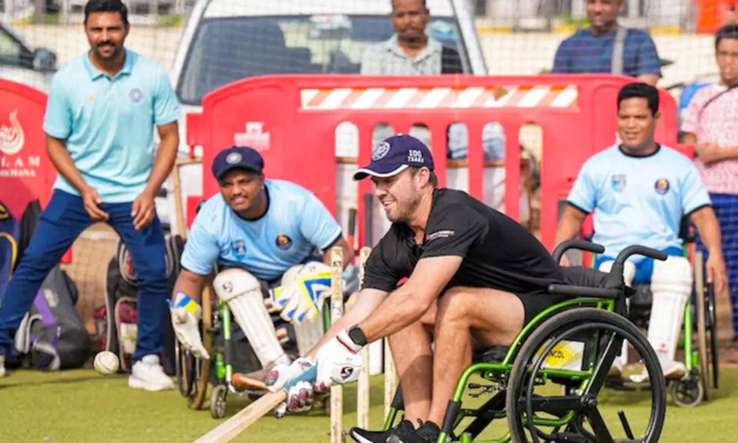 இந்நிலையில் தற்போது இந்தியா வந்துள்ள ஏபி டி வில்லியர்ஸ், மும்பை மாற்றுத்திறனாளிகள் கிரிக்கெட் அணியுடன் வீல் சேரில் அமர்ந்து கிரிக்கெட் விளையாடி மகிழ்ந்துள்ளார்.