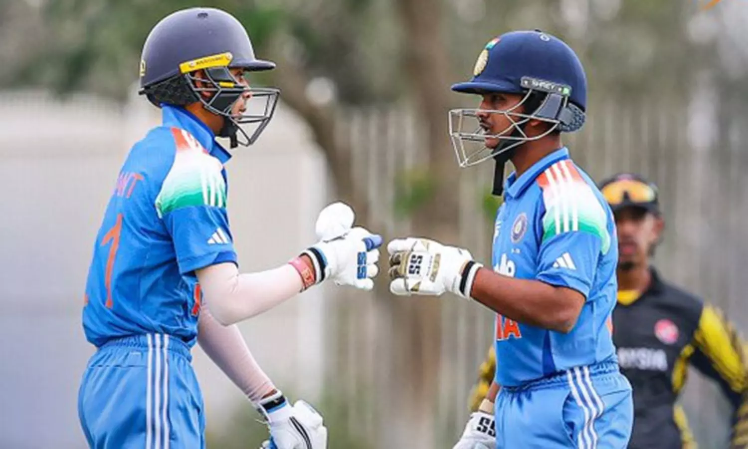 அதன்படி முதலில் பேட்டிங் செய்த இந்திய அணிக்கு தொடக்க ஆட்டக்காரர் ஆன கேப்டன் ஆயுஷ் மாத்ரே 14 ரன்களில் ஆட்டமிழந்து ஏமாற்றினார். மற்றொரு தொடக்க ஆட்டக்காரர் ஆன வைபவ் சூர்யவன்ஷி 26 பந்துகளில் அரைசதம் விளாசிய நிலையில் அவுட்டானார். அடுத்து வந்த விஹான் மல்ஹோத்ரா 7 ரன்களில் வெளியேறினார்.