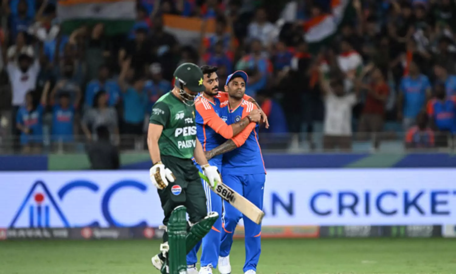 போட்டி முடிந்ததும் இரு அணி வீரர்களும் கைகுலுக்குவது வழக்கம். ஆனால் இந்த ஆட்டம் முடிந்ததும், இந்திய வீரர்கள் பாகிஸ்தான் வீரர்களுடன் கை குலுக்குவதை தவிர்த்துவிட்டனர். இந்த விவகாரம் சர்ச்சையாகியுள்ளது.