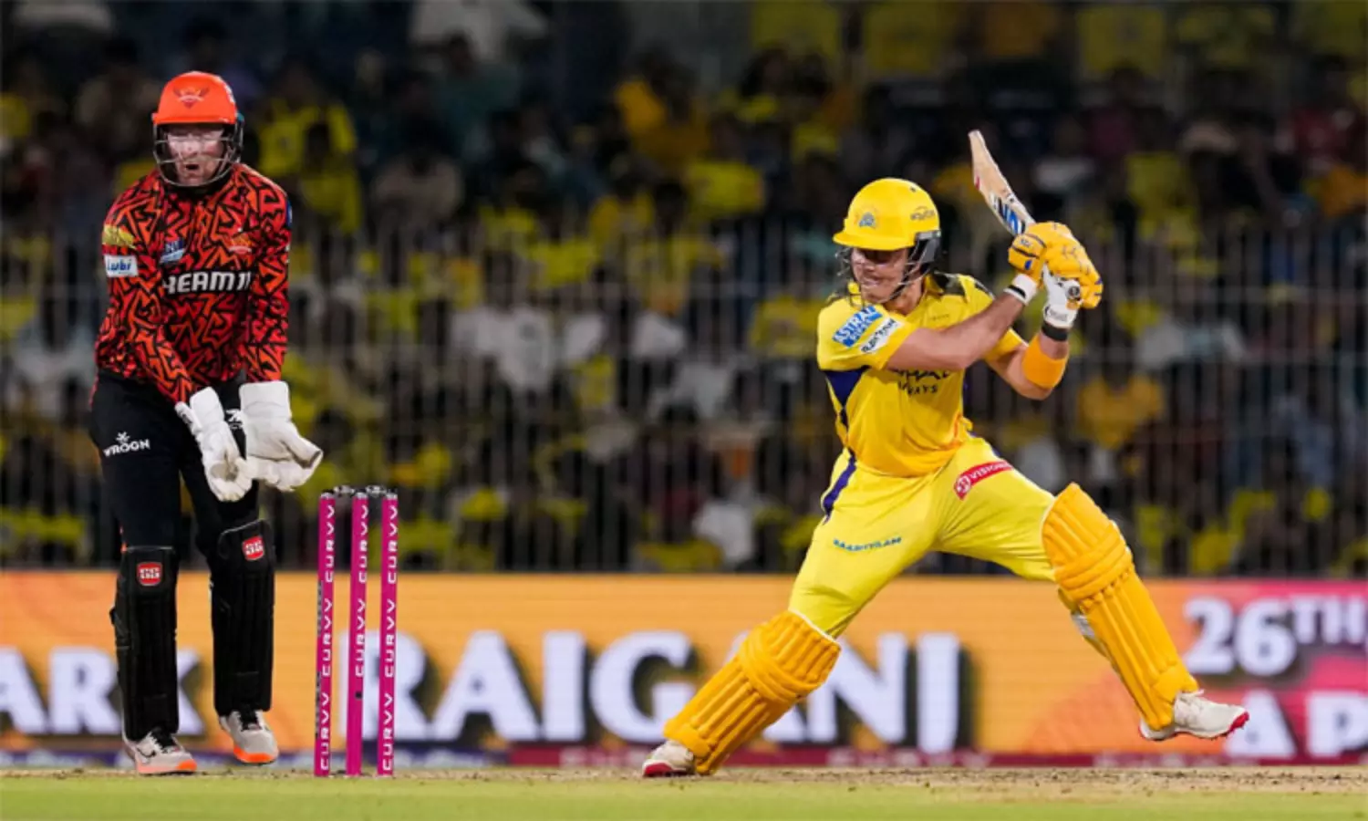 இன்றைய ஆட்டத்தில் டாஸ் வென்ற ஐதராபாத் அணி பந்துவீச்சை தேர்வு செய்தது. இதையடுத்து சென்னை சூப்பர் கிங்ஸ் அணி முதலாவதாக பேட்டிங் செய்தது. ஷமி வீசிய முதல் ஓவரின் முதல் பந்திலேயே தொடக்க ஆட்டக்காரர் ஷேக் ரஷீத் கேட்ச் ஆகி ஆட்டமிழந்தார். இதையடுத்து மற்றொரு தொடக்க வீரர் ஆயுஷ் மாத்ரேவுடன் சாம் கர்ரன் ஜோடி சேர்ந்தார்.