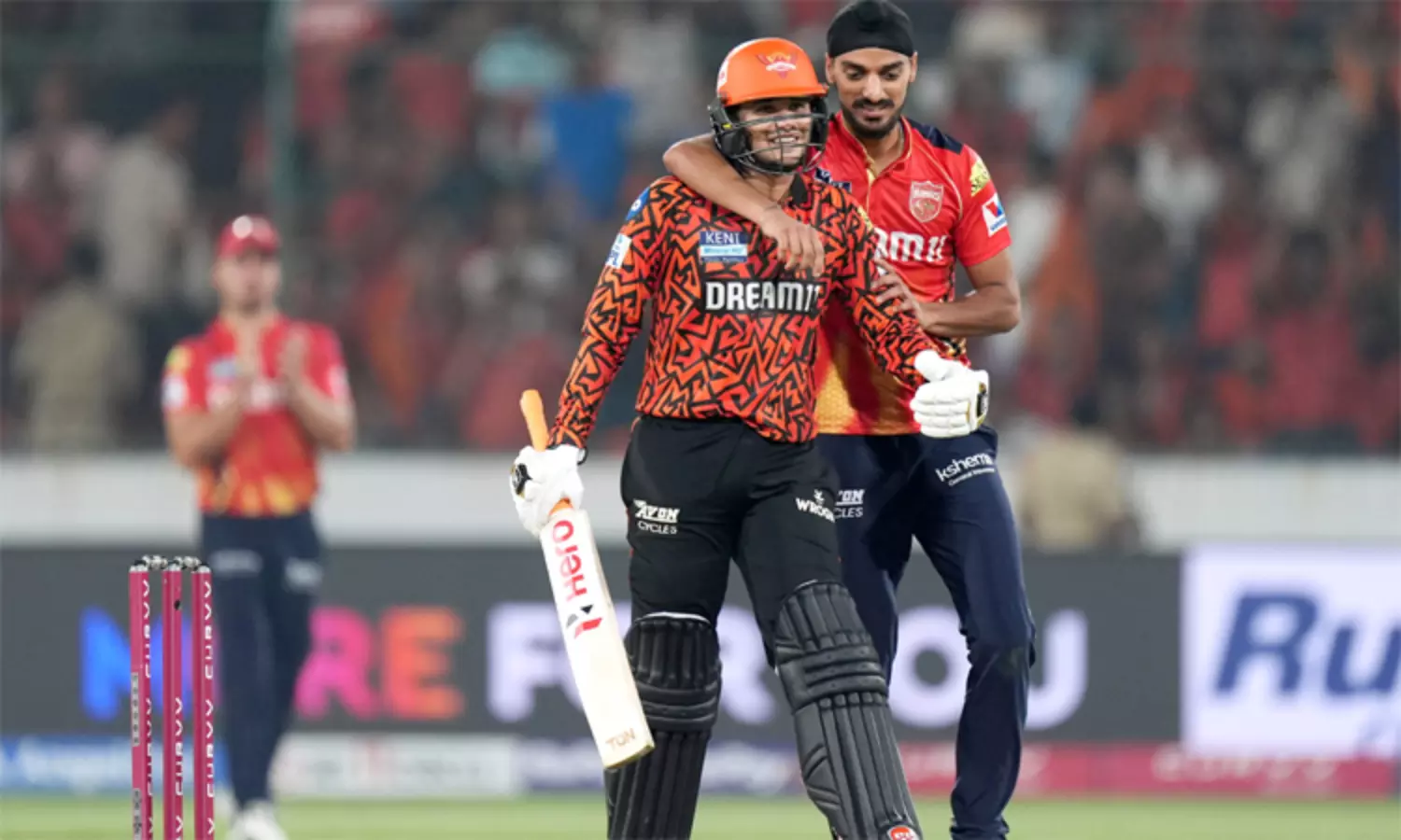 இதனைத் தொடர்ந்து சன்ரைசர்ஸ் ஹைதராபாத் அணி 246 ரன்கள் எடுத்தால் வெற்றி என்ற இமாலய இலக்குடன் களம் இறங்கி விளையாடியது. இத்தொடரில் தொடர்ந்து சொதப்பி வந்த நட்சத்திர கூட்டணி இம்முறை ஜொலித்தது. டிரவிஸ் ஹெட் மற்றும் அபிஷேக் சர்மா சிறப்பாக விளையாடினர். இந்த கூட்டணியை பிரிக்க பஞ்சாப் அணி 171 ரன்கள் விட்டுக்கொடுக்க வேண்டி இருந்தது. டிராவிஸ் ஹெட் 66 ரன்களில் ஆட்டமிழந்தார். ஆனால் மறுமுனையில் இருந்த அபிஷேக் சர்மா தொடர்ந்து அதிரடியாக விளையாடி சதம் விளாசினார்.