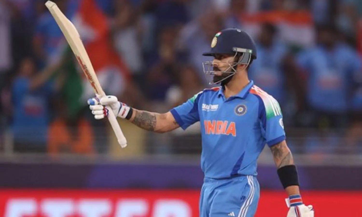 இந்த ஆட்டத்தில் அடித்த அரைசதத்தையும் சேர்த்து ஐ.சி.சி. நடத்தும் ஒருநாள் தொடர்களான உலகக்கோப்பை மற்றும் சாம்பியன்ஸ் டிராபியில் விராட் கோலி இதுவரை 24 அரைசதங்கள் அடித்துள்ளார். இதன் மூலம் ஐ.சி.சி. ஒருநாள் தொடர்களில் அதிக அரைசதங்கள் அடித்த வீரர் என்ற உலக சாதனையை படைத்துள்ளார். இதற்கு முன்னர் சச்சின் 23 அரைசதங்கள் அடித்திருந்ததே சாதனையாக இருந்தது. தற்போது அவரின் சாதனையை தகர்த்து விராட் புதிய சாதனை படைத்துள்ளார்.
