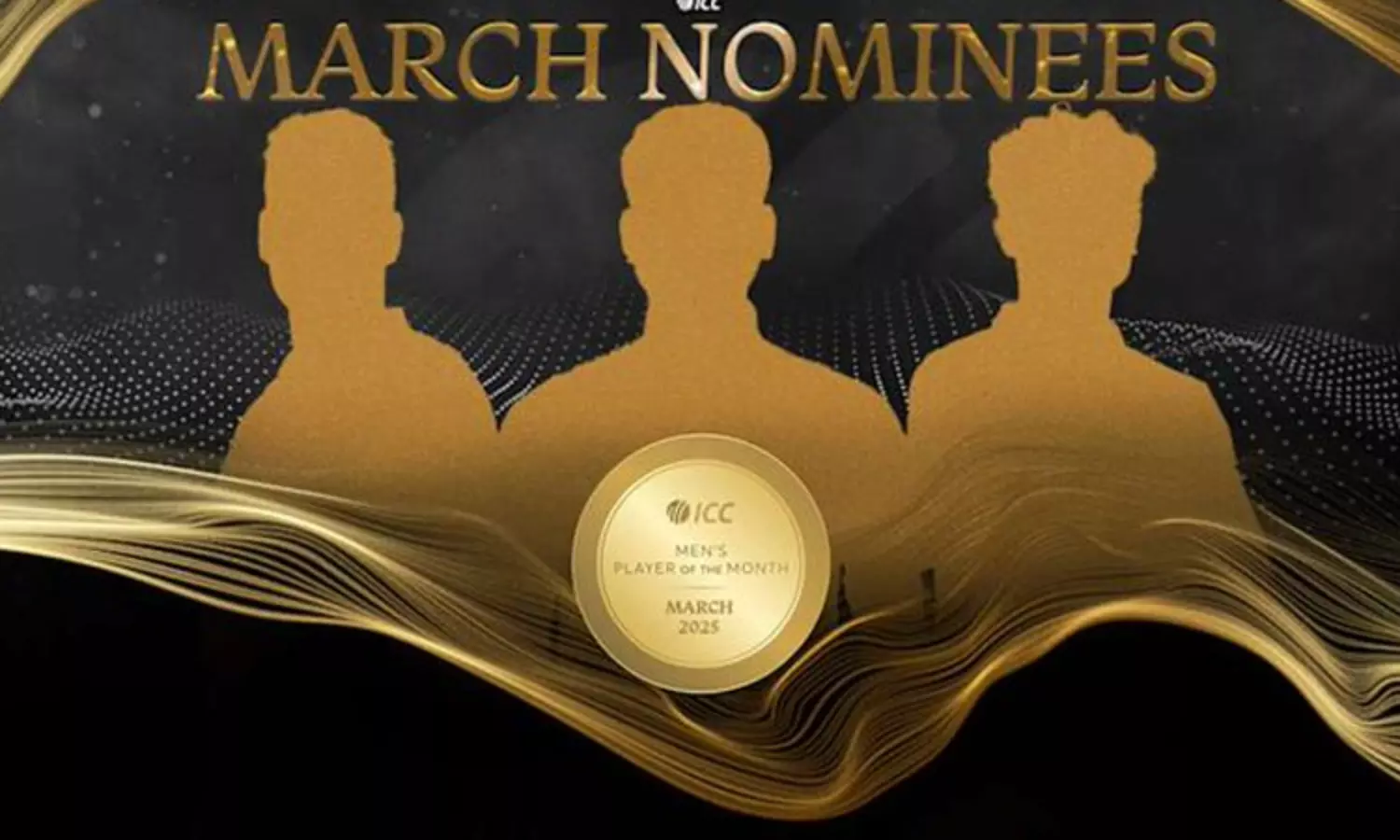 சர்வதேச கிரிக்கெட் கவுன்சில் (ஐ.சி.சி.) ஒவ்வொரு மாதமும் சிறந்த வீரர் மற்றும் வீராங்கனையை தேர்வு செய்து கவுரவித்து வருகிறது. அதன்படி மார்ச் மாத சிறந்த வீரர் மற்றும் வீராங்கனையை தேர்வு செய்ய தலா 3 வீரர் மற்றும் வீராங்கனைகள் கொண்ட பரிந்துரை பெயர் பட்டியலை ஐ.சி.சி. அறிவித்துள்ளது.
