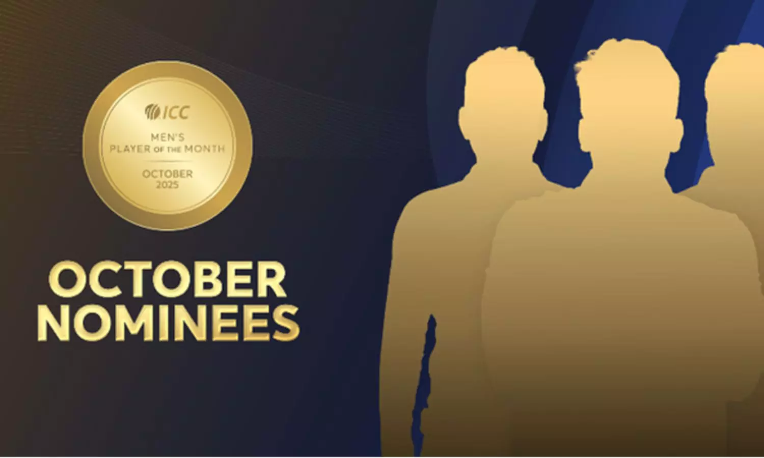 சர்வதேச கிரிக்கெட் கவுன்சில் (ஐ.சி.சி.), ஒவ்வொரு மாதமும் சிறந்த வீரர் மற்றும் வீராங்கனைகளை தேர்வு செய்து அவர்களுக்கு விருது வழங்கி கவுரவித்து வருகிறது. அதன்படி அக்டோபார் மாத சிறந்த வீரர் மற்றும் வீராங்கனையை தேர்வு செய்ய பரிந்துரை பட்டியலை ஐ.சி.சி. வெளியிட்டுள்ளது.