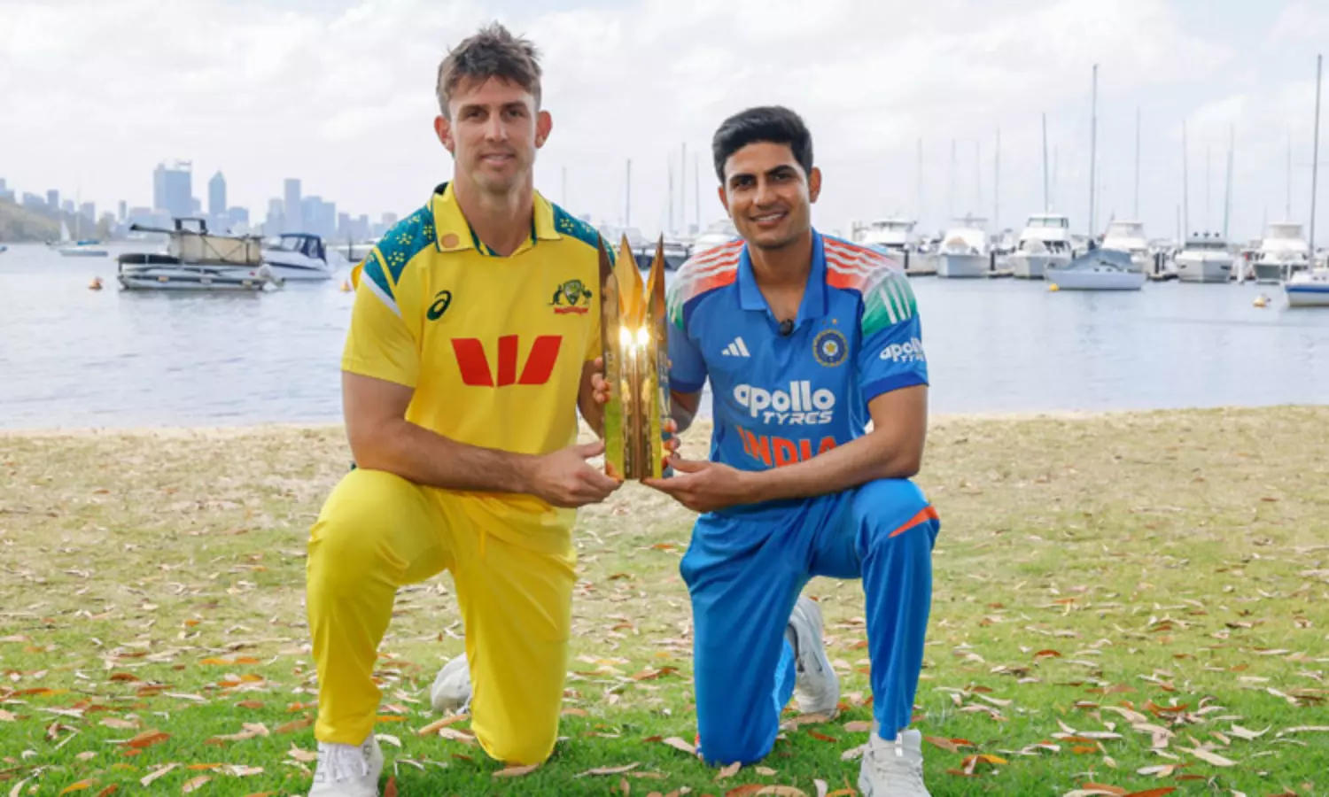 இந்நிலையில் இந்த தொடரில் வெற்றி பெறும் அணிக்கு வழங்கப்படும் கோப்பையுடன் இந்திய அணியின் கேப்டன் சுப்மன் கில்லும், ஆஸ்திரேலிய கேப்டன் மிட்செல் மார்ஷும் புகைப்படம் எடுத்து கொண்டனர். இது வைரலாகி வருகிறது.