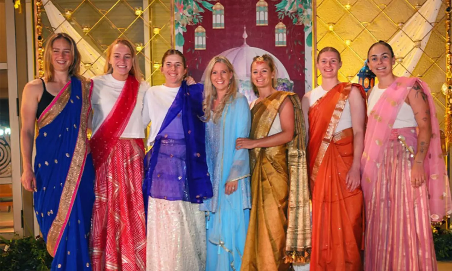சர்வதேச மகளிர் தினம்: சேலையில் அசத்திய பெங்களூரு அணி வீராங்கனைகள்.. புகைப்படங்கள் வைரல்
