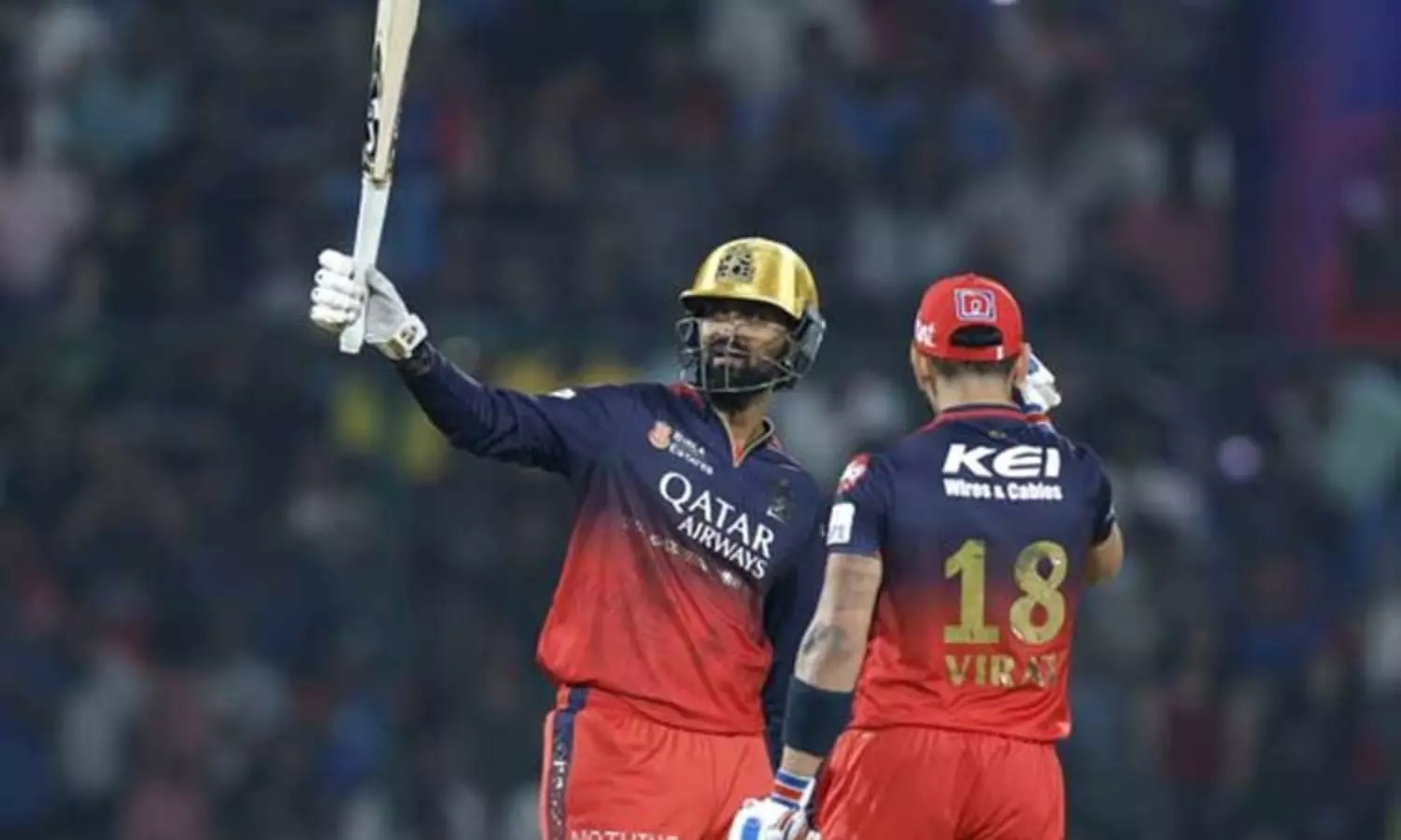 தொடக்கத்தில் ஜேக்கப் பெத்தேல் 12 ரன்களுக்கு ஆட்டமிழந்தார். பின்னர் படிக்கல் ரன் எதுவும் எடுக்காமல் , ரஜத் படிதார் 6 ரன்களுக்கும் ஆட்டமிழந்தனர் .