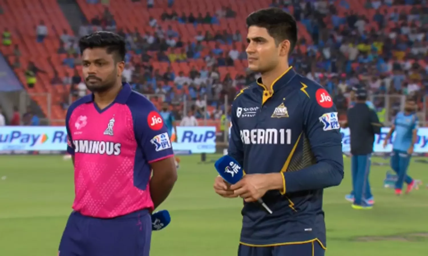 குஜராத் அணிக்கு எதிரான ஆட்டத்தில் டாஸ் வென்ற ராஜஸ்தான் அணி பந்துவீச்சை தேர்வு செய்துள்ளது.;