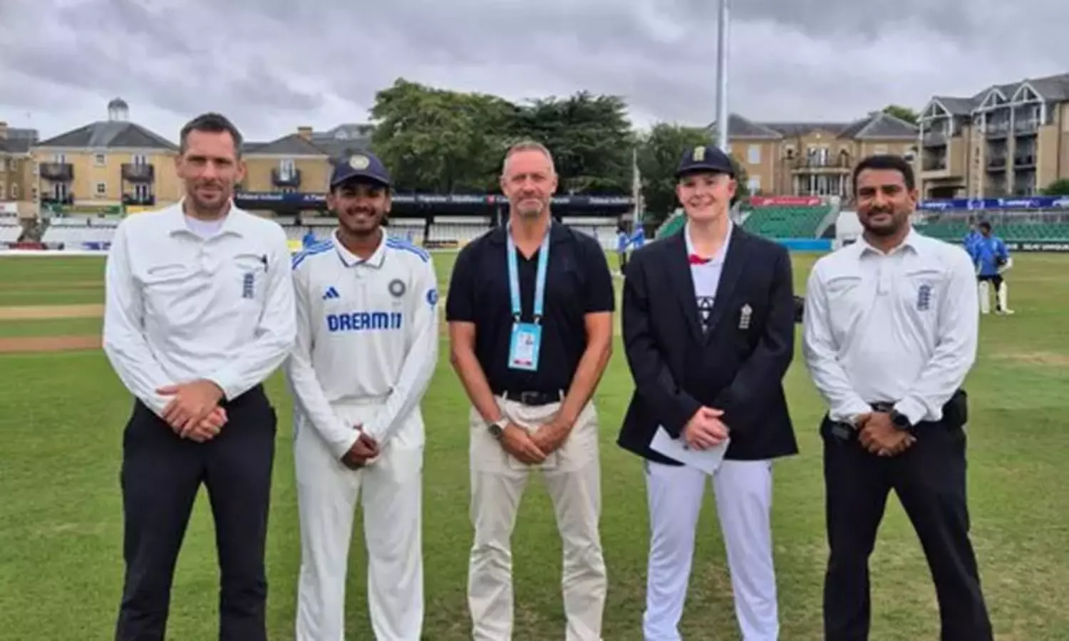 இங்கிலாந்து தரப்பில் ஏகான்ஷ் சிங் 66 ரன்னுடனும், ஜேம்ஸ் மின்டோ 18 ரன்னுடனும் களத்தில் உள்ளனர். இந்தியா தரப்பில் ஆதித்யா ராவத், ஆர்.எஸ். அம்ப்ரிஷ், நமன் புஷ்பக் ஆகியோர் தலா 2 விக்கெட் வீழ்த்தினர். இன்றூ 2ம் நாள் ஆட்டம் நடைபெறுகிறது.