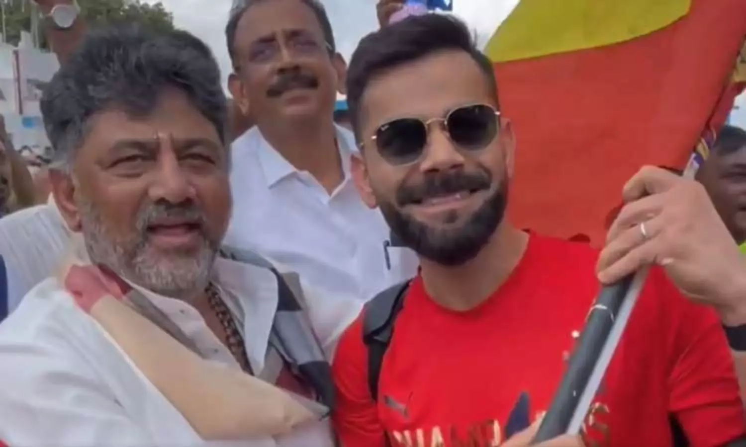 இந்நிலையில் அகமதாபாத்தில் இருந்து விமானம் மூலம் ஆர்சிபி அணி வீரர்கள் இன்று பெருங்களூரு வந்தடைந்தனர். அவர்களை கர்நாடகாவின் துணை முதல்-மந்திரி டி.கே. சிவக்குமார் விமானத்தின் அருகிலேயே சென்று பூக்கொத்துடன் வரவேற்றார். அவருடன் விராட்கோலி ஆர்சிபி கொடியை வைத்து புகைப்படம் எடுத்துக் கொண்டனர். இது தொடர்பான வீடியோ சமூக வலைதளங்களில் வைரலாகி வருகிறது.
