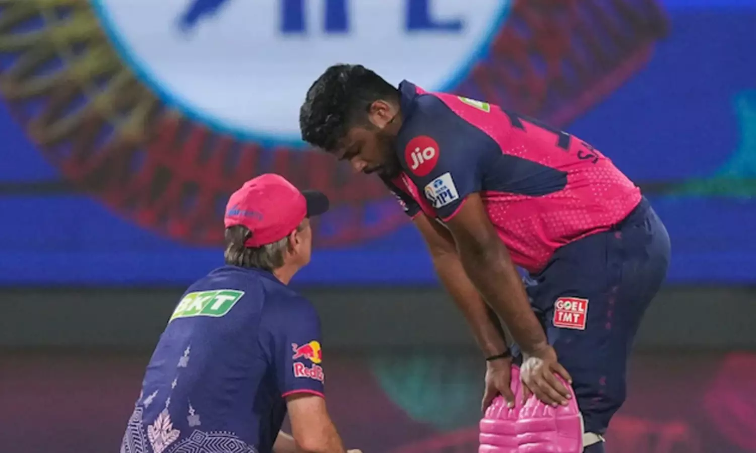 இந்நிலையில் இந்த போட்டியிலிருந்து வயிற்று பகுதியில் ஏற்பட்ட காயம் காரணமாக ராஜஸ்தான் ராயல்ஸ் அணியின் கேப்டனான சஞ்சு சாம்சன் விலகியுள்ளார்.