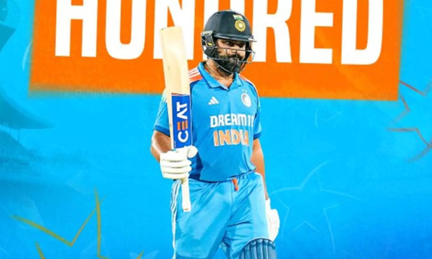 ஒருமுனையில் அபாரமாக விளையாடிய ரோகித் சர்மா 76 பந்துகளில் சதம் விளாசினார். நீண்ட நாட்கள் கழித்து சர்வதேச போட்டிகளில் ரோகித் சர்மா சதம் அடித்துள்ளார்.