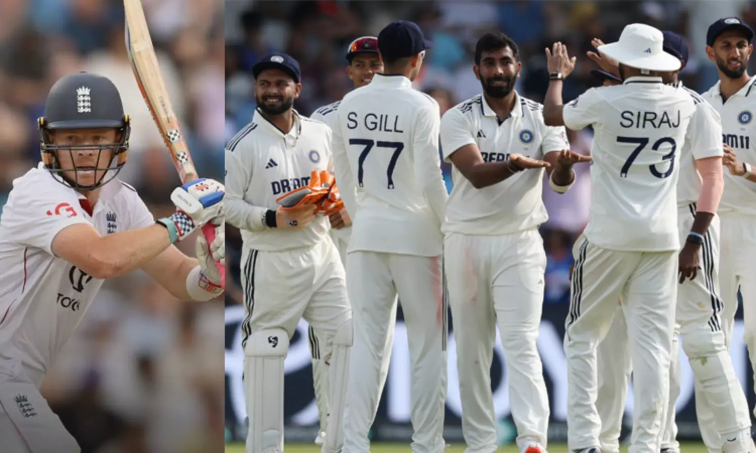 இதனைத்தொடர்ந்து 2-ம் நாள் ஆட்டம் நிறைவடைந்தது. 2-ம் நாள் ஆட்ட நேர முடிவில் இங்கிலாந்து அணி 49 ஓவர்களில் 3 விக்கெட்டுகளை இழந்து 209 ரன்கள் எடுத்தது. ஓலி போப் 100 ரன்களும், ஹேரி புரூக் ரன் ஏதும் எடுக்காமலும் ஆட்டமிழக்காமல் களத்தில் உள்ளனர். இந்திய அணியின் சார்பில் பும்ரா 3 விக்கெட்டுகளை வீழ்த்தி அசத்தினார். தற்போது இங்கிலாந்து அணி, இந்திய அணியை விட 262 ரன்கள் பின் தங்கி உள்ளது.