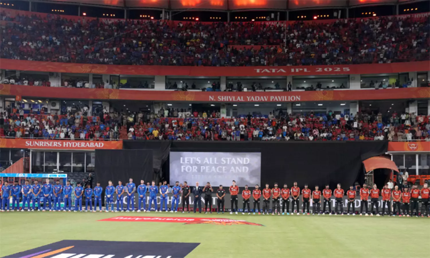 முன்னதாக போட்டி தொடங்குவதற்கு முன்பு பஹல்காம் தாக்குதலில் உயிரிழந்தவர்களுக்காக மைதானத்தில் மும்பை, ஐதராபாத் அணி வீரர்கள், பார்வையாளர்கள் உள்ளிட்டோர் 60 வினாடிகள் மவுன அஞ்சலி செலுத்தினர். இரு அணி வீரர்களும் தங்கல் இரங்கலை தெரிவிக்கும் விதமாக கையில் கருப்பு பட்டை அணிந்து விளையாடி வருகின்றனர்.