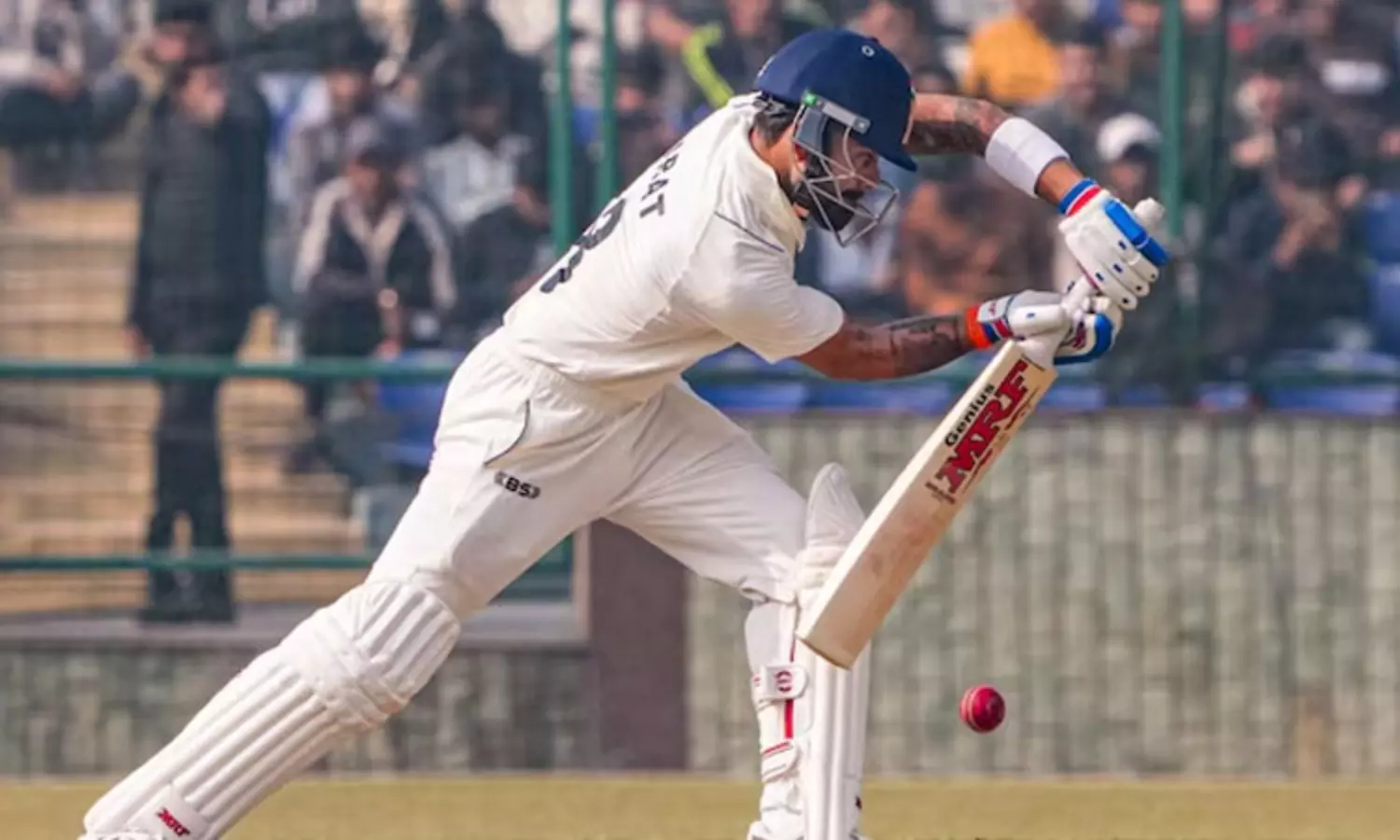 இதனையடுத்து 2-வது நாள் ஆட்டம் இன்று நடைபெற்று வருகிறது. தொடர்ந்து பேட்டிங் செய்த டெல்லி அணி மேற்கொண்டு ஒரு விக்கெட்டை இழந்ததும், நட்சத்திர வீரர் விராட் கோலி களமிறங்கினார். உள்ளூர் ரசிகர்களின் பெரும் ஆதரவோடு களமிறங்கி 15 பந்துகளை சந்தித்த அவர் 6 ரன்களில் கிளீன் போல்டாகி ஏமாற்றம் அளித்தார்.