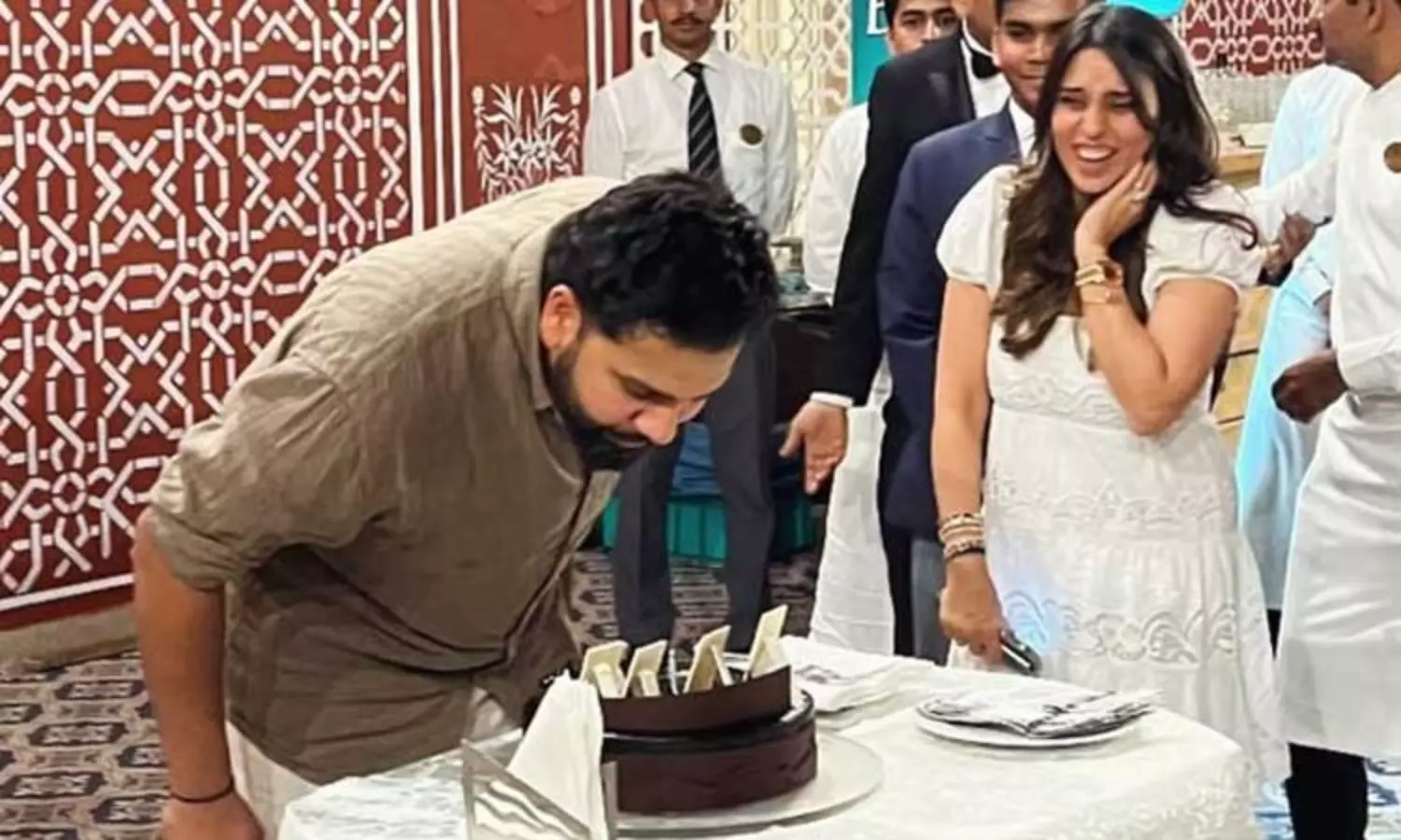 மனைவியுடன் கேக் வெட்டி பிறந்தநாளை கொண்டாடிய ரோகித் சர்மா