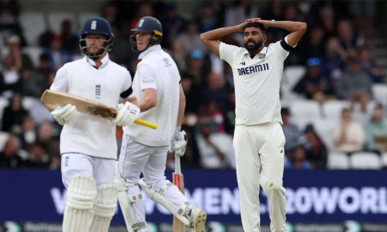 இதனால் கடுப்படைந்த சிராஜ், கிராலியை முறைத்தார். அதற்கு மறுமுனையில் இருந்த பென் டக்கெட், சிராஜிடம் சில வார்த்தைகளை விட்டார். இதனால் களத்தில் சிறிது நேரம் பரபரப்பு நிலவியது. இந்த சம்பவம் இணையத்தில் வைரலாகி வருகிறது.