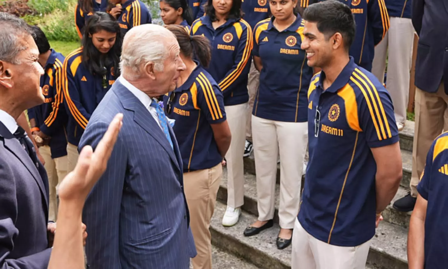 இங்கிலாந்தில் தற்போது சுற்றுப்பயணம் மேற்கொண்டு விளையாடி வரும் இந்திய ஆண்கள் மற்றும் மகளிர் கிரிக்கெட் அணியினர் இங்கிலாந்து மன்னர் மூன்றாம் சார்லசை, லண்டனில் உள்ள புனித ஜேம்ஸ் அரண்மனையில் நேற்று சந்தித்து கலந்துரையாடினர். அப்போது கேப்டன் சுப்மன் கில் மற்றும் துணை கேப்டன் ரிஷப் பண்டிடம் 3-வது டெஸ்டின் பரபரப்பான தருணங்கள் குறித்து மன்னர் ஜாலியாக விவாதித்தார்.