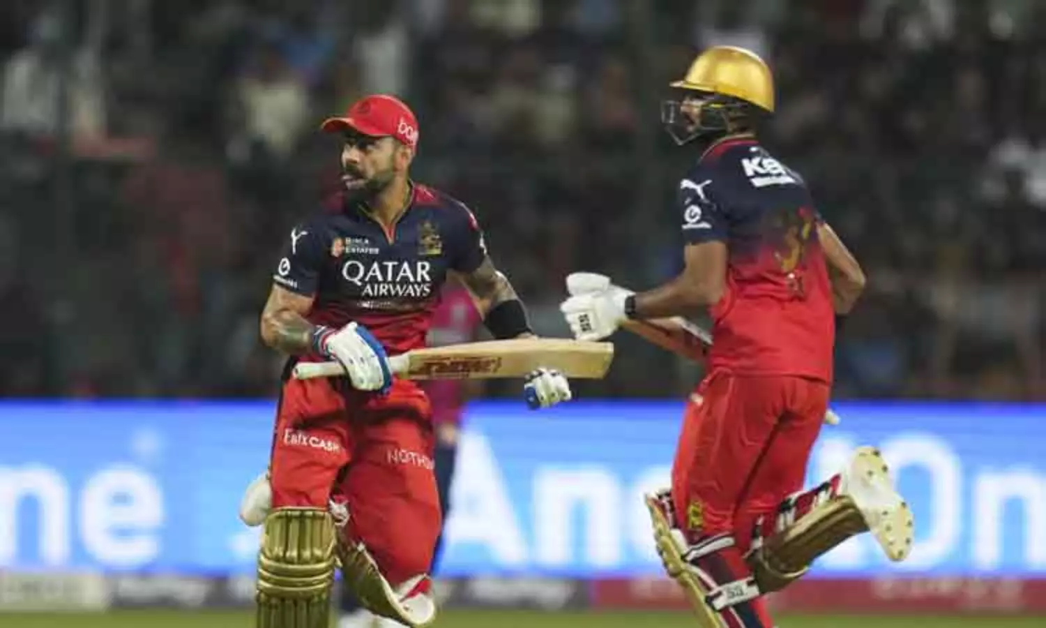 பின்னர் 206 ரன்கள் இலக்கை நோக்கி ஆடிய ராஜஸ்தான் அணி 20 ஓவர்களில் 9 விக்கெட்டுக்கு 194 ரன்களே எடுத்தது. இதனால் பெங்களூரு அணி 11 ரன் வித்தியாசத்தில் வெற்றி பெற்றது. ராஜஸ்தான் தரப்பில் ஜெய்ஸ்வால் 49 ரன்கள் அடித்தார். பெங்களூரு அணி தரப்பில் ஹேசில்வுட் 4 விக்கெட்டுகள் வீழ்த்தினார்.