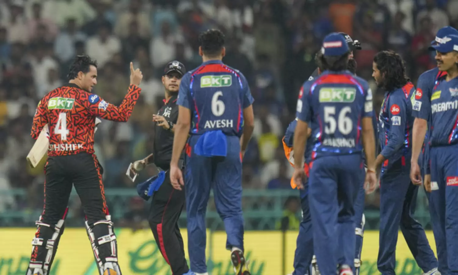 நேற்றைய ஆட்டத்தில் அபிஷேக் சர்மா - திக்வேஷ் ரதி இடையே வாக்குவாதம் ஏற்பட்டது.;