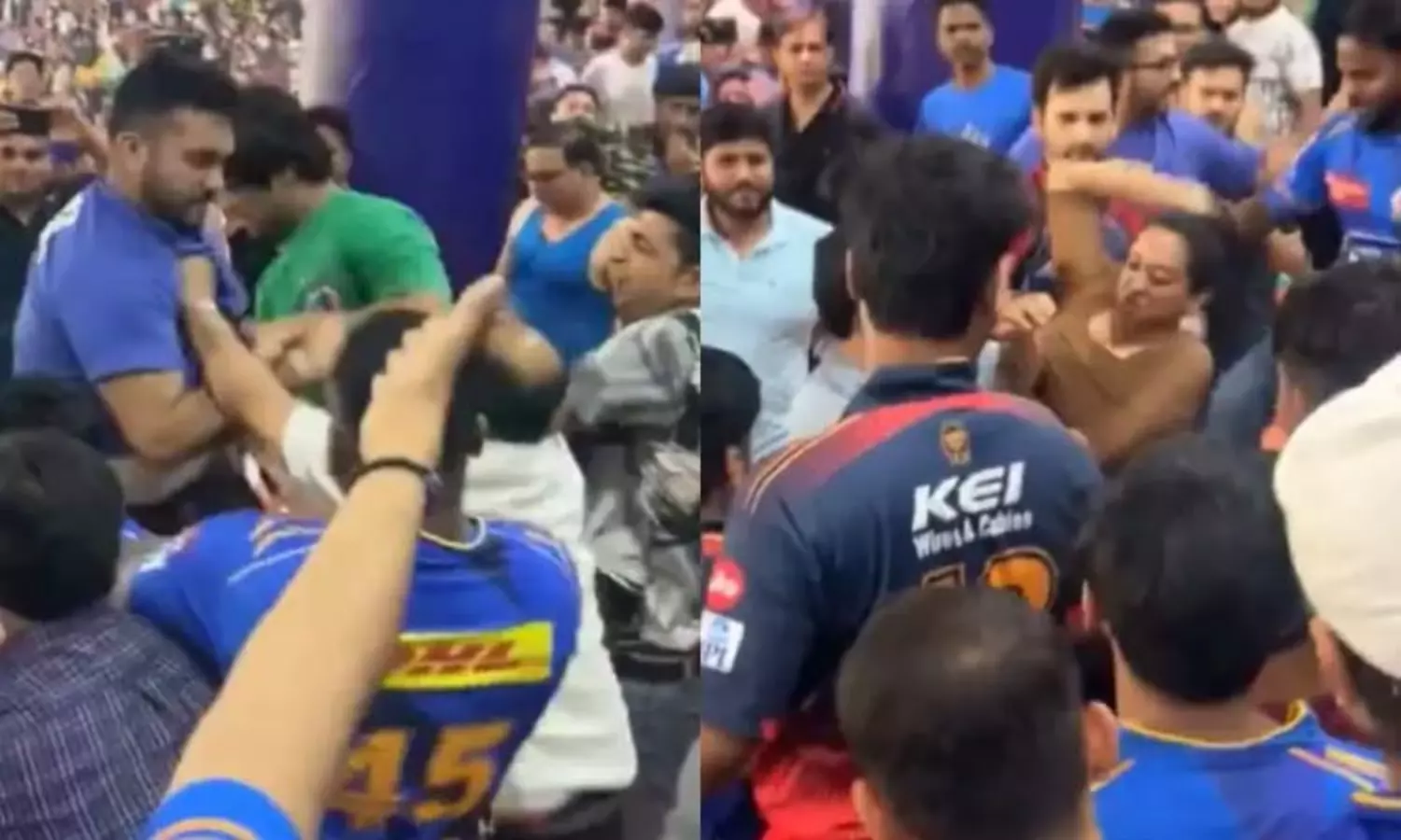மும்பை - டெல்லி ஆட்டத்தின்போது மைதானத்தில் மோதிக்கொண்ட ரசிகர்கள்