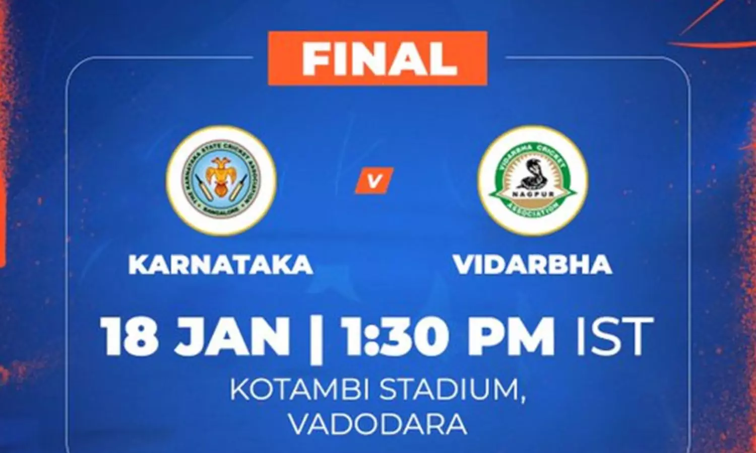 இந்தியாவில் நடைபெறும் உள்ளூர் ஒருநாள் கிரிக்கெட் தொடரான விஜய் ஹசாரே கோப்பையின் 32-வது சீசன் இன்றுடன் நிறைவடைய உள்ளது. இதில் குஜராத் மாநிலம் வதோதராவில் இன்று நடைபெற உள்ள இறுதிப்போட்டியில் கருண் நாயர் தலைமையிலான விதர்பா அணி, மயங்க் அகர்வால் தலைமையிலான கர்நாடகாவை எதிர்கொள்கிறது.