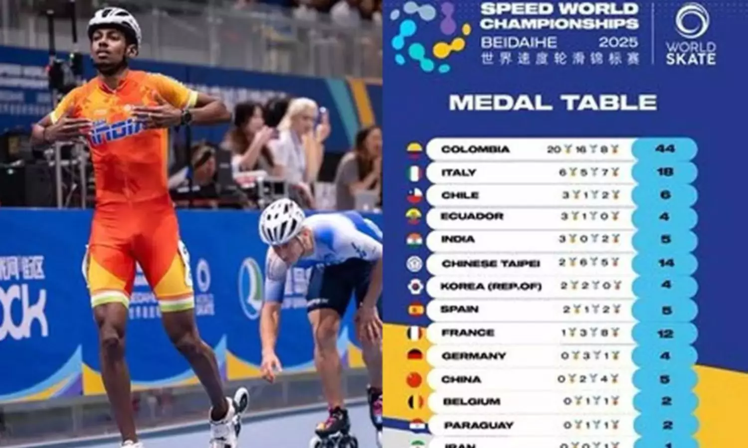 இதன்மூலம் உலக வேக ஸ்கேட்டிங் சாம்பியன்ஷிப் வரலாற்றில் முதல் முறையாக இந்தியா பதக்கப்பட்டியலில் 5-வது இடத்தை பிடித்து சாதனை படைத்துள்ளது.