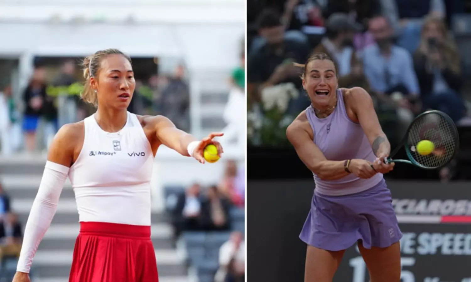 பல முன்னணி வீரர், வீராங்கனைகள் பங்கேற்றுள்ள இத்தாலி ஓபன் டென்னிஸ் தொடர் ரோமில் நடைபெற்று வருகிறது. இறுதிக்கட்டத்தை எட்டியுள்ள இந்த தொடரில் இன்று நடைபெற்ற மகளிர் ஒற்றையர் பிரிவின் காலிறுதி ஆட்டம் ஒன்றில் நம்பர் 1 வீராங்கனையான அரினா சபலென்கா (பெலாரஸ்), கின்வென் ஜெங் (சீனா) உடன் மோதினார்.