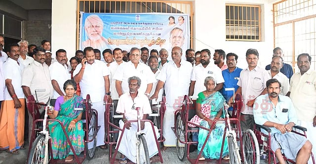 புதுச்சேரி அரசு சமூக நலத்துறை மற்றும் மத்திய அரசின் மாற்றுத்திறனாளிகள் அதிகாரம் அளித்தல் துறை சார்பாக மணவெளி தொகுதியை சேர்ந்த 45 மாற்றுத்திறனாளிகளுக்கு 3 சக்கர சைக்கிள், சக்கர நாற்காலி, காது கேட்கும் கருவிகள் உள்ளிட்ட உபகரணங்கள் வழங்கும் நிகழ்ச்சி தவளக்குப்பத்தில் நடைபெற்றது. நிகழ்ச்சியில் சபாநாயகர் செல்வம் தலைமை தாங்கி, பயனாளிகளுக்கு உபகரணங்களை வழங்கினார்.