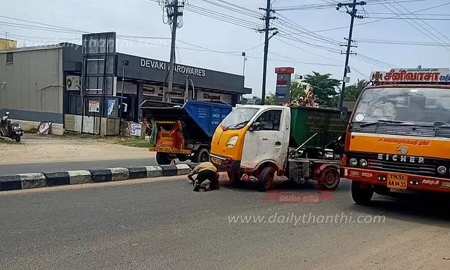 மூலக்குளம்-வில்லியனூர் மெயின் ரோட்டில் உழவர்கரை அருகே இன்று மதியம் குப்பை ஏற்றி வந்த வாகனம் ஒன்று திடீரென பழுதாகி நின்றது. இதனால் அந்த பகுதியில் போக்குவரத்து பாதிக்கப்பட்டது. இதையடுத்து மற்றொரு வாகனம் மூலம் அந்த வாகனத்தை கட்டி இழுத்து சென்றனர். அதன்பிறகே போக்குவரத்து சீரானது.