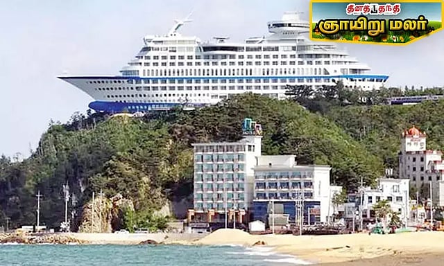 சொகுசு கப்பல் என்றால் கடலுக்குள்தான் மிதக்கும் என்ற நிலைப்பாட்டில் இருந்து மாறுபட்ட தோற்றத்தை கொண்டிருக்கிறது, சன் குரூஸ். தென் கொரியாவில் உள்ள புகழ்பெற்ற ஜியோங்டாங்ஜின் கடற்கரை பகுதியில் ஒரு மலைக்குன்றின் மீது அமைந்திருப்பதுதான் சிறப்பம்சம். மலை மீது ஏறி கப்பலுக்குள் நுழைந்தாலும் கடலுக்குள் இருப்பது போன்ற உணர்வை தரும் வகையில் இது கட்டமைக்கப்பட்டிருக்கிறது.