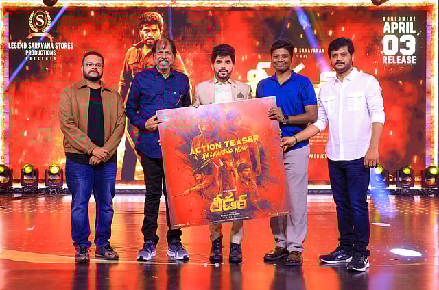 லெஜெண்ட் சரவணன் முதன்மை வேடத்தில் நடிக்க, ஆர்.எஸ். துரை செந்தில்குமார் இயக்கத்தில் உருவாகியுள்ள 'லீடர்' திரைப்படம் வரும் ஏப்ரல் 3ம் தேதி உலகமெங்கும் திரையரங்குகளில் வெளியாகிறது. இப்படத்தின் இசை மற்றும் ஆக்ஷன் டீசர் வெளியீடு, திரைப் பிரபலங்கள் முன்னிலையில் படக்குழுவினர் மற்றும் ரசிகர்கள் பங்கேற்க சென்னையில் பிரம்மாண்டமாக நடைபெற்றது.
