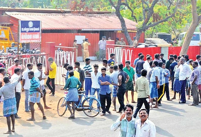 ஜல்லிக்கட்டுக்கு ஆதரவாக போராட்டத்தில் ஈடுபட்ட மாணவர்கள் மீது போலீசார் தடியடி நடத்தியதை கண்டித்து எண்ணூர் தாழங்குப்பம், நெட்டுக்குப்பம் உள்பட 6 மீனவ கிராமங்களை சேர்ந்த பொதுமக்கள் தாழங்குப்பம் மார்க்கெட் அருகே மறியல் போராட்டத்தில் ஈடுபட்டனர். அப்போது அங்கிருந்த அ.தி.மு.க. பேனரை சிலர் கிழித்ததாக கூறப்படுகிறது.