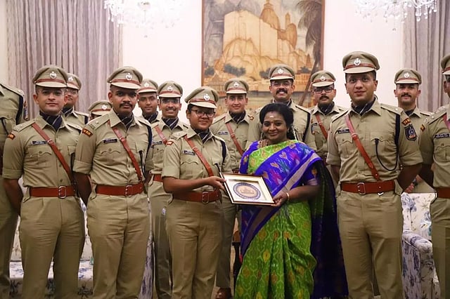 முன்னதாக கவர்னர் தமிழிசை சவுந்தரராஜனை, பாரத் தர்ஷன் திட்டத்தின் ஒரு பகுதியாக சர்தார் வல்லபாய் பட்டேல் தேசிய போலீஸ் அகாடமியின் 25 ஐ.பி.எஸ். பயிற்சி அதிகாரிகள் நேற்று சந்தித்தனர். அப்போது, ஐ.பி.எஸ். அதிகாரிகள் பயிற்சி முடிந்து நாட்டிற்காக சிறப்பாக பணியாற்ற வேண்டும் என்று கவர்னர் தமிழிசை சவுந்தரராஜன் வாழ்த்து தெரிவித்தார்.