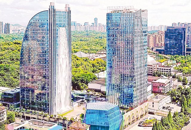 அந்த அடிப்படையில் பரபரப்பான நகரத்தின் மத்தியில் அமைந்துள்ள உயரமான கட்டிடத்தில் செயற்கையான நீர் வீழ்ச்சியை சீனாவை சேர்ந்த கட்டிட வடிவமைப்பாளர்கள் உருவாக்கியுள்ளார்கள்.