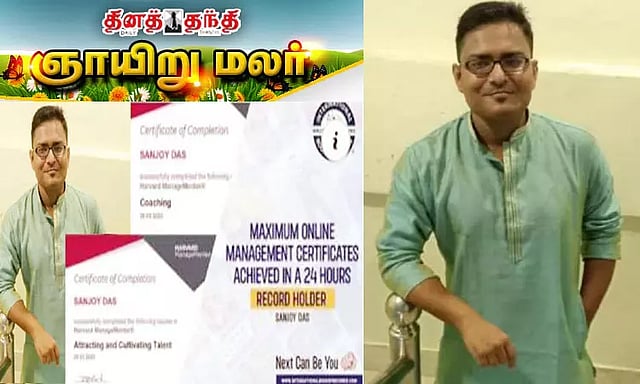 கொரோனா அச்சத்தால் வீட்டுக்குள்ளேயே முடங்கி கிடந்த சமயங்களில் கூடுதல் திறன்களை வளர்த்துக்கொள்வதற்கு கிடைத்த வாய்ப்பாக அதனை பயன்படுத்திக்கொண்டார்கள். இப்போதும் பலர் ஆன்லைன் வழியே படிக்கும் யுக்தியை தொடர்ந்து கொண்டிருக்கிறார்கள். அதன் மூலம் ஒரே சமயத்தில் வெவ்வேறு படிப்புகளை படித்து முடித்து சான்றிதழ் பெறுபவர்களும் இருக்கிறார்கள். அவர்களில் சஞ்சய் தாஸ் தனித்துவமானவர். 24 மணி நேரத்தில் 26 படிப்புகளில் சான்றிதழ்களை பெற்று சாதனை படைத்துள்ளார்.