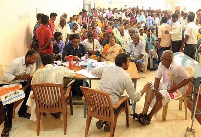 வேலூர் மாவட்டத்தில் உள்ள மாற்றுத்திறனாளிகளுக்கு தேசிய அடையாள அட்டை வழங்கும் சிறப்பு முகாம் ஒவ்வொரு மாதமும் முதல் செவ்வாய்க்கிழமையன்று கலெக்டர் அலுவலகத்தில் நடந்து வருகிறது. அதன்படி இந்த மாதத்துக்கான சிறப்பு முகாமுக்கு மாற்றுத்திறனாளிகள் நலத்துறை இளநிலை மறுவாழ்வு அலுவலர் மலர்விழி தலைமை தாங்கினார். முடநீக்கியல் தொழில்நுட்பவியலாளர் ஜோதிலிங்கம் முன்னிலை வகித்தார். இதில், வேலூர் மாவட்டத்தை சேர்ந்த 300க்கும் மேற்பட்ட மாற்றுத்திறனாளிகள் கலந்துகொண்டனர்.
