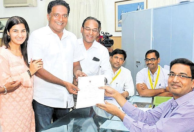 இந்த நிலையில் நடிகர் பிரகாஷ்ராஜ், பெங்களூரு மத்தி தொகுதியில் போட்டியிடுவதாக ஏற்கனவே அறிவித்து இருந்தார். அதன்படி அவர் நேற்று பெங்களூரு மாநகராட்சி தலைமை அலுவலகத்தில் வேட்புமனு தாக்கல் செய்தார். தேர்தல் அதிகாரி லேகேசிடம் பிரகாஷ்ராஜ் மனு தாக்கல் செய்தார்.