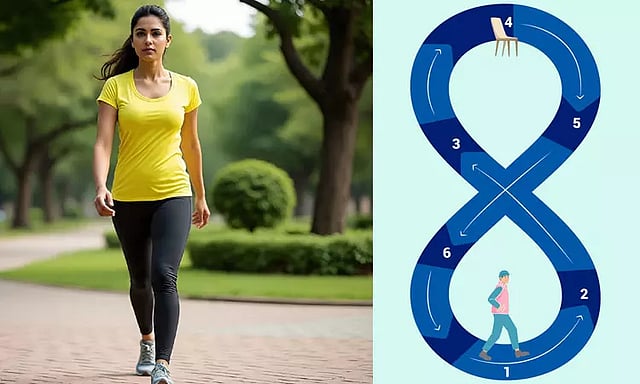 உடற்பயிற்சி செய்வதற்கு வெளியே செல்ல முடியாத சூழலில், நிறைய பேர் வீட்டுக்குள்ளேயே விதவிதமான உடற்பயிற்சிகளை செய்வதற்கு பழகி விட்டார்கள். மொட்டைமாடியிலோ, வீட்டின் முற்றத்திலோ 8 வடிவத்தில் கோடுகள் வரைந்து அந்த வட்டத்தை சுற்றி நடந்து நடைப்பயிற்சி மேற்கொள்பவர்களும் அதிகரித்து இருக்கிறார்கள். சிறுவர்கள் முதல் பெரியவர்கள் வரை எளிமையாக மேற்கொள்ளும் பயிற்சியாகவும் இந்த 8 எட்டு வடிவ நடைப்பயிற்சி அமைந்திருக்கிறது. இந்த நடைப்பயிற்சியை மேற்கொள்வது குறித்தும், அதனால் கிடைக்கும் நன்மைகள் குறித்தும் பார்போம்.