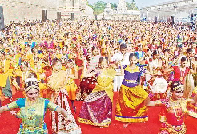 பிரதோஷ காலத்தில் ஆயிரம் நடன கலைஞர்களின் பரதநாட்டிய சாதனை சிறப்புக்குரியது. இசைக்கு மும்மூர்த்திகளாக திகழ்ந்தவர்கள் அவதரித்த ஊரில் நாட்டியாஞ்சலி நடத்துவது மகிழ்ச்சி அளிக்கிறது.