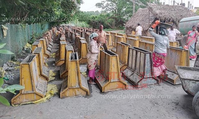 விபத்துகளை தடுக்கும் வகையில் கிழக்கு கடற்கரை சாலையில் வைக்க சிமெண்டு தடுப்புகள் தயாராகி வருகின்றன.