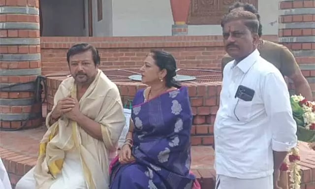 கடலூர் மாவட்டத்தில் அமைந்துள்ள பிரசித்தி பெற்ற சிதம்பரம் நடராஜர் கோவிலுக்கு நடிகர் ஜெயராம் தனது மனைவியுடன் இன்று வருகை தந்தார். அவர்களுக்கு கோவில் தீட்சிதர்கள் சார்பில் மரியாதை செய்யப்பட்டது. தொடர்ந்து கோவிலில் ஜெயராம் தனது மனைவியுடன் சாமி தரிசனம் செய்தார். பின்னர் இருவருக்கும் பிரசாதம் வழங்கப்பட்டது.