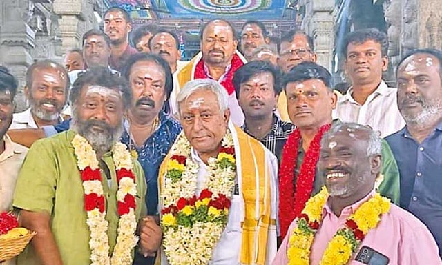 மதுரை அருகே திருப்பரங்குன்றம் முருகன் கோவிலுக்கு நடிகர் ரஜினிகாந்தின் அண்ணன் சத்ய நாராயணராவ் கெய்க்வாட் நேற்று சென்றுள்ளார். அவரை ரஜினி ரசிகர்கள் வரவேற்று கோவிலுக்குள் அழைத்து சென்றனர். பின்னர் அவர் கோவிலின் கருவறையில் முருகப்பெருமானின் திருக்கரத்தில் உள்ள தங்கவேலுக்கு 51 லிட்டர் பசும்பால் வழங்கி பாலாபிஷேகம் செய்து முருகப்பெருமானை வழிபட்டார். இதனையடுத்து ரஜினி ரசிகர்களுக்கும், கோவிலுக்குள் சாமி தரிசனம் செய்ய வந்த பக்தர்களுக்கும் அபிஷேக பால் வழங்கினார்.