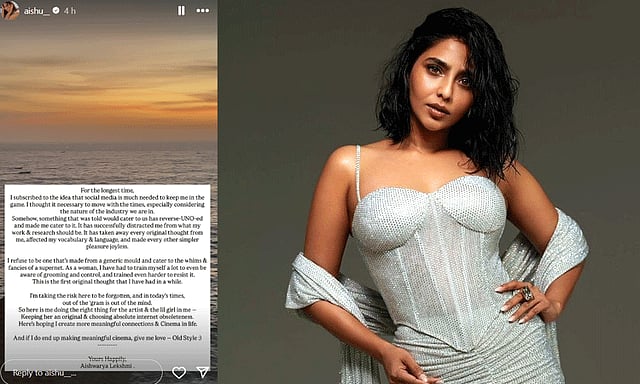 இந்த நிலையில், நடிகை ஐஸ்வர்யா லட்சுமி திடீர் முடிவு ஒன்றை எடுத்துள்ளார். அதாவது சமூக வலைதளத்தில் இருந்து விலக முடிவு செய்துள்ளதாக தனது இன்ஸ்டாகிராம் ஸ்டோரியில் பதிவிட்டுள்ளார்.