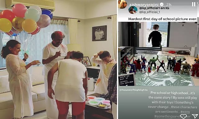 இந்த நிலையில், இன்ஸ்டாகிராமில் முதல் நாள் பள்ளிக்குச் செல்லும் சிறுவனுக்கு அவனது பொம்மைகள் வழியனுப்புவது போன்ற புகைப்படத்துடன், 'இதுவே முதல் நாள் பள்ளிக்குச் செல்லும் புகைப்படங்களில் கனமான ஒன்று' என இன்ஸ்டா கணக்கிலிருந்து பதிவிடப்பட்டிருந்தது. அதைப் பகிர்ந்த ஐஸ்வர்யா ரஜினிகாந்த், "மழலையர் பள்ளியோ... உயர்நிலை பள்ளியோ... அதே கதைதான். என் மகன்கள் இப்போதும் பொம்மைகளுடன் விளையாடுகின்றனர். சில விசயங்கள் மாறுவதேயில்லை. இந்தக் கதாபாத்திரங்கள் உணர்ச்சிப்பூர்வமானவை.." எனப் பதிவிட்டுள்ளார்.
