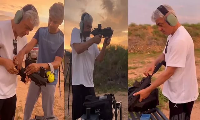 இந்நிலையில், திருப்பூர் கொங்குநாடு ரைபிள் கிளப்பில், அதன் நிறுவனர் செந்தில் குமார் உடன் இணைந்து, அஜித்குமார் துப்பாக்கிச்சுடும் பயிற்சியில் ஈடுபட்டுள்ளார். இலக்கை அஜித் குறிபார்த்து சுடும் காட்சிகள் வெளியாகி கவனம் பெற்றுள்ளது.