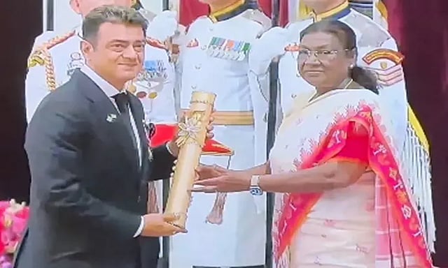 இந்த நிலையில், டெல்லி ஜனாதிபதி மாளிகையில் இன்று விருதுகள் வழங்கப்பட்டு வருகின்றன.நிகழ்வில், ஜனாதிபதி திரவுபதி முமு நடிகர் அஜித் குமாருக்கு பூத்ம பூஷண் விருதை வழங்கினார். விருதுபெற்ற புகைப்படங்களை அஜித் ரசிகர்கள் பெரிதாக வைரலாக்கி வருகின்றனர்.
