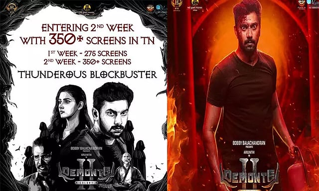 அஜய் ஞானமுத்து இயக்கத்தில் அருள்நிதி மற்றும் பிரியா பவானி சங்கர் நடிப்பில் உருவான டிமான்ட்டி காலனி 2 திரைப்படம் ஆகஸ்ட் 15ம் தேதி வெளியானது. ஒருசில கலவையான விமர்சனங்களைப் பெற்றாலும் முதல் பாகத்தின் தொடர்ச்சியான காட்சிகள், திகில் விஎப்எக்ஸ் என ரசிகர்களிடம் வரவேற்பைப் பெற்றுள்ளது. மூன்றாம் பாகத்திற்கான குறிப்போடு முடிவதால், அடுத்த பாகம் உருவாகும் எனத் தெரிகிறது.