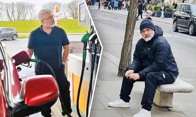 ஒரு புகைப்படத்தில் அவரே பெட்ரோல் பங்குக்கு சென்று காருக்கு பெட்ரோல் போடுகிறார். இன்னொரு புகைப்படத்தில் மக்கள் அங்கும் இங்குமாக நடந்து செல்லும் பகுதியில் சாலையோர இருக்கை மீது தனியாக உட்கார்ந்து இருக்கிறார்.