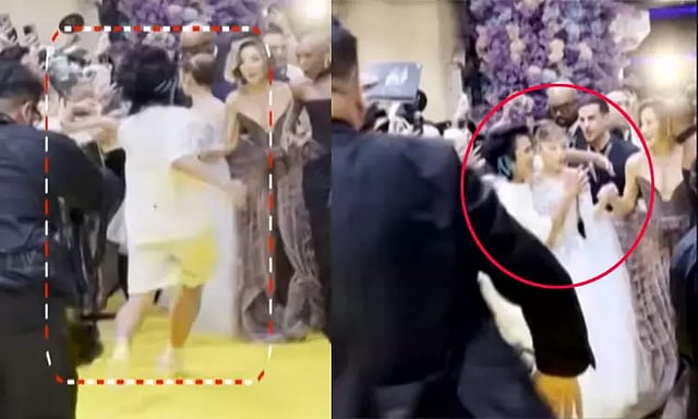 அப்போது ரசிகர் ஒருவர் தடுப்புகளை தாண்டிச் சென்று அரியானா கிராண்டேவை அத்துமீறி தொட முயன்றார். அந்த நபர் அரியானாவின் தோள்களில் கை வைத்து புகைப்படத்திற்கு போஸ் கொடுத்தார். திடீரென நடந்த இந்த சம்பவத்தால் அரியானா கிராண்டே செய்வதறியாது அதிர்ச்சியில் உறைந்தார். உடனடியாக அருகில் இருந்த சக நடிகர்கள் மற்றும் பாதுகாவலர்கள் சேர்ந்து அந்த இளைஞரை அங்கிருந்து அப்புறப்படுத்தினர்.